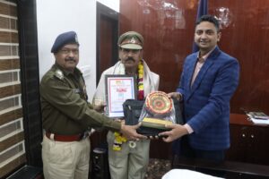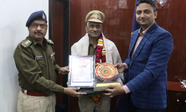 IPS सूरज कुमार वर्मा द्वारा शासकीय सेवकों को जो अपनी अर्धवार्षिक आयु पूर्ण कर शासकीय सेवा से सेवानिवृत स्मृति चिन्ह भेंट किया